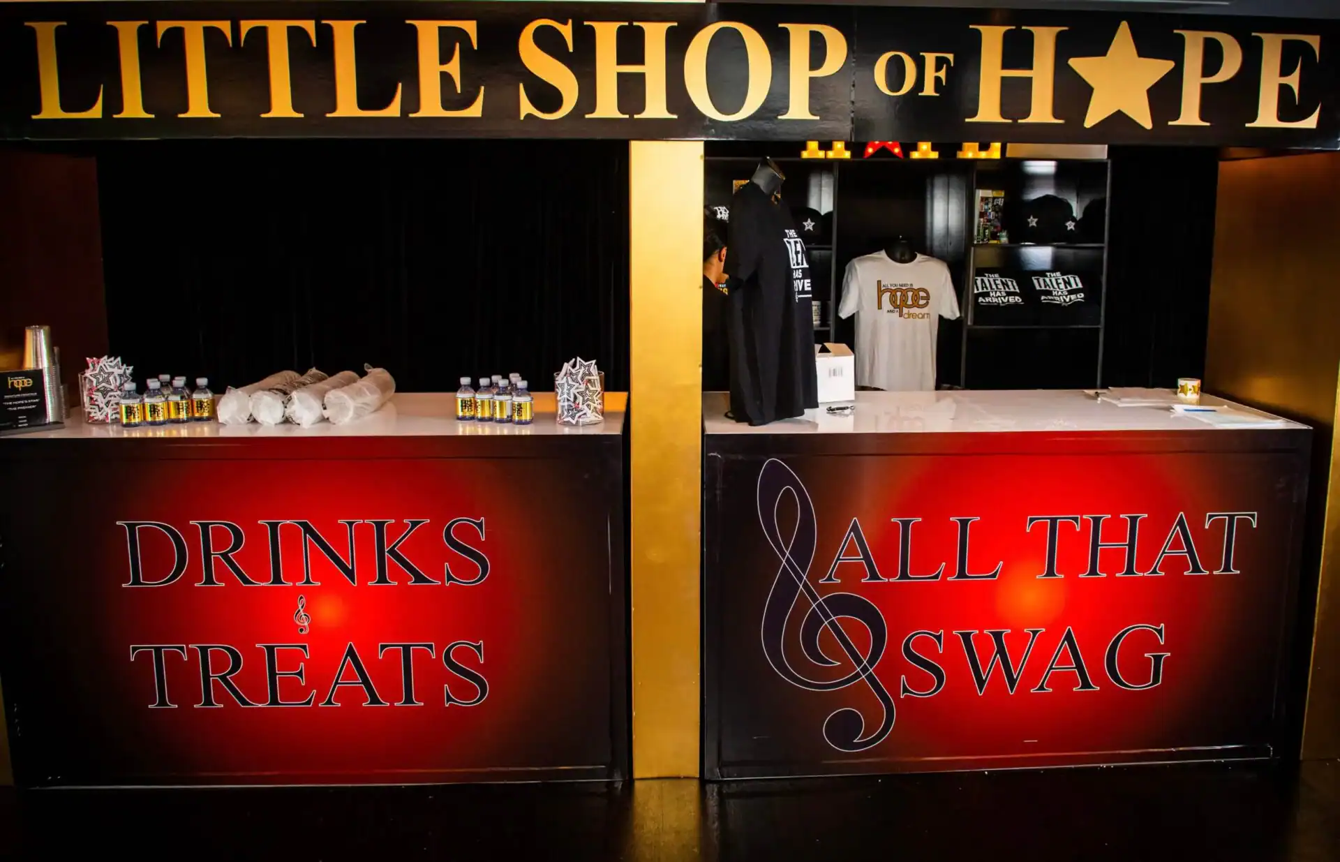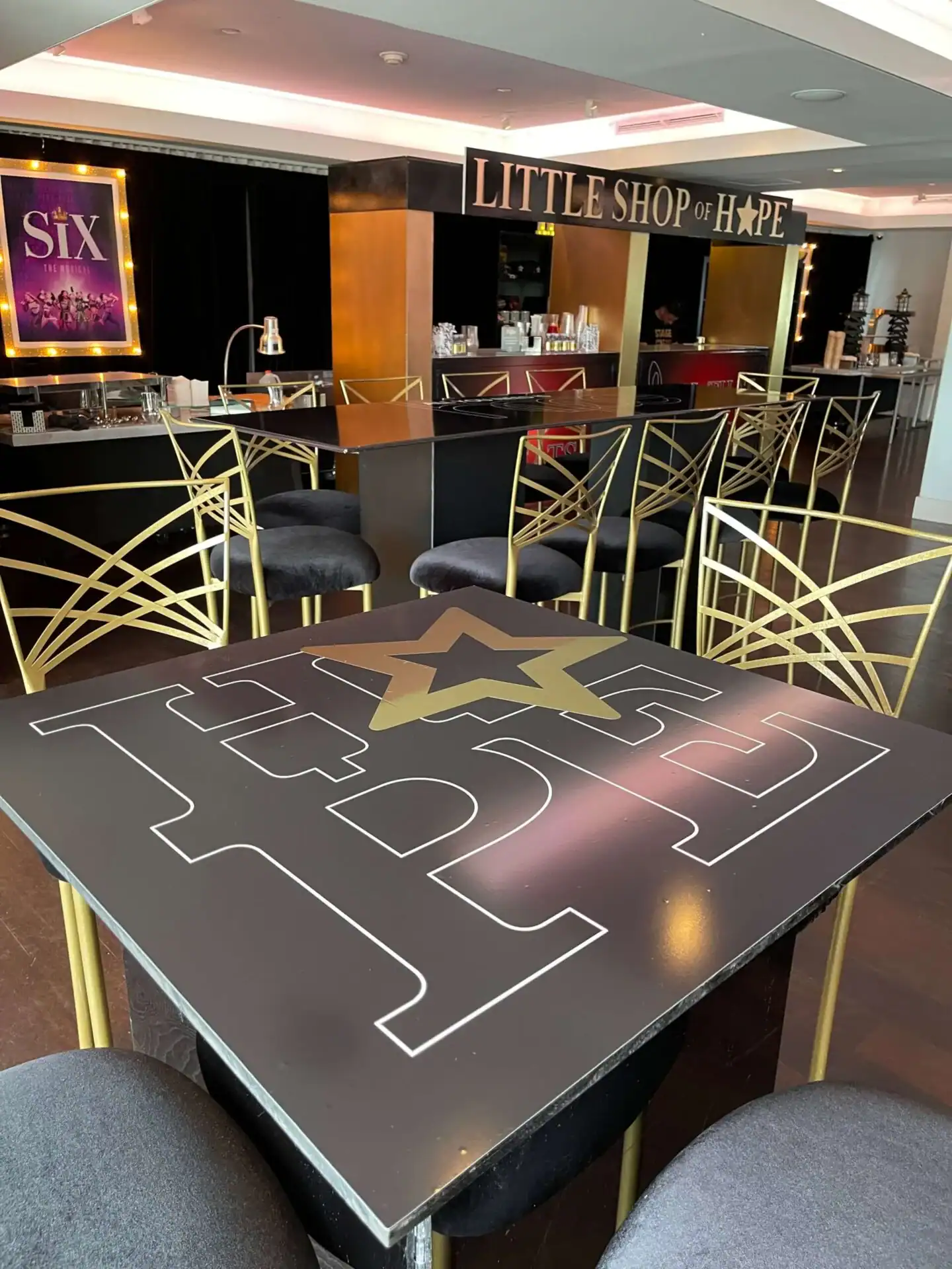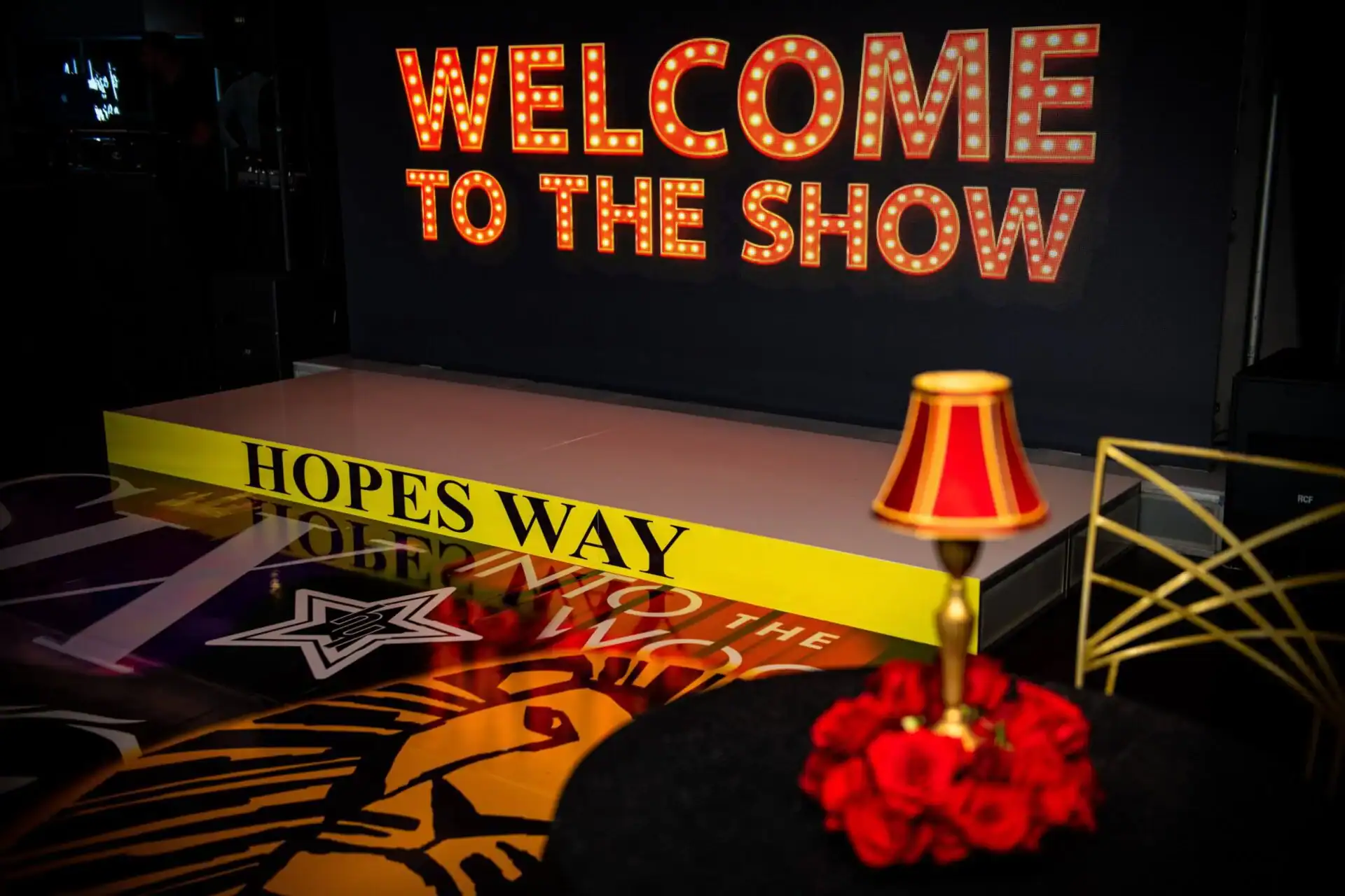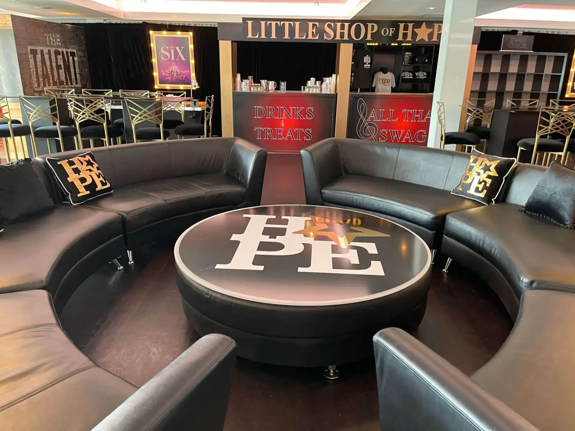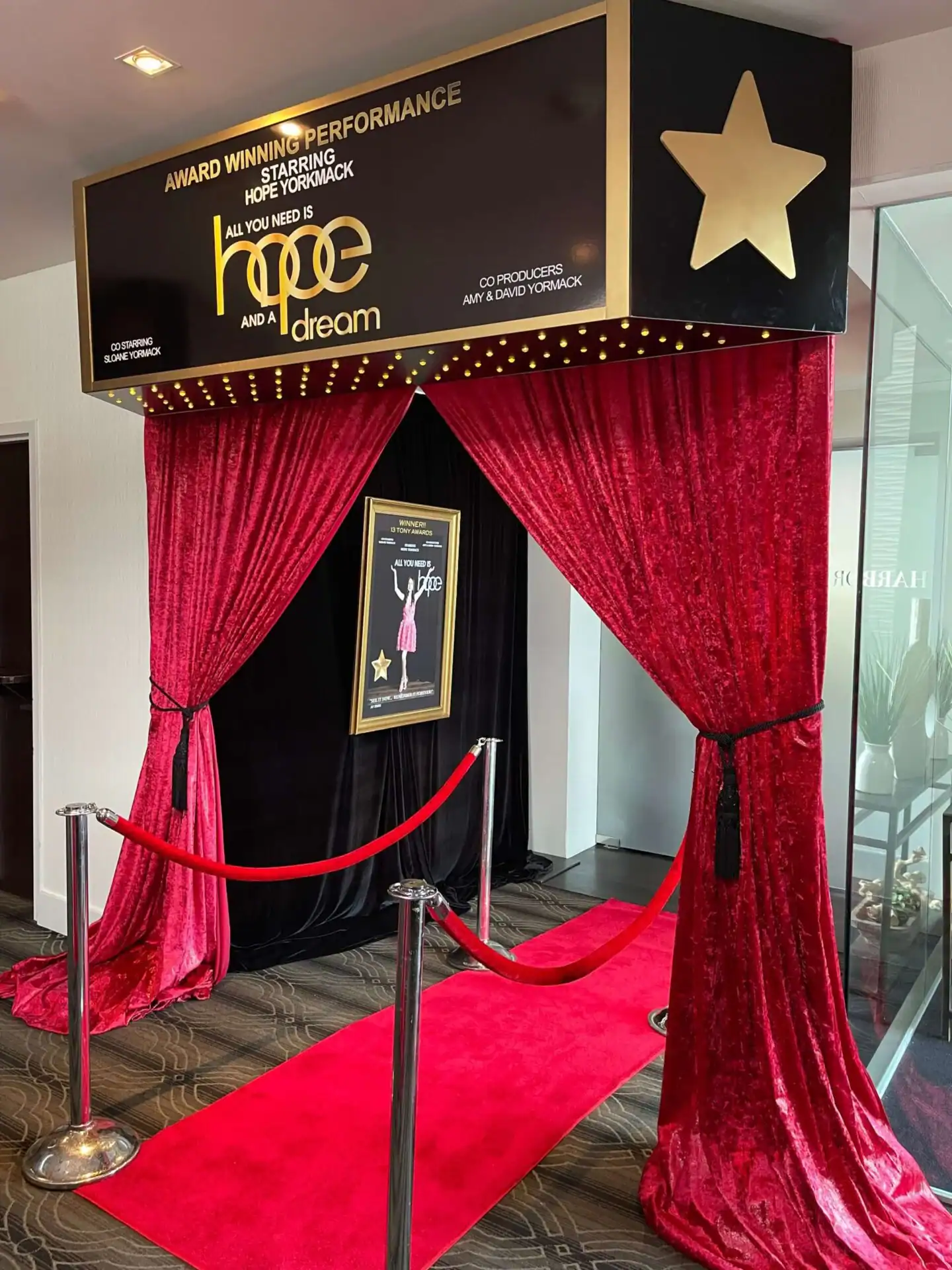 Debbie Hart an expert event planner, designed a stunning Bat Mitzvah Tribute to Broadway, featuring a rich color palette of deep reds, luxurious black velvet textures, and abundant golden accents. The Event space was adorned with over sized broadway show billboards, creating a vibrant ambiance reminiscent of a night out on broadway in the Great Theatre. Guests were treated to broadways finest offerings, including the marquee entry, a swag filled gift shop, an immersive photo booth experience , and a custom wrapped dance floor. Without a doubt it was the hottest ticket in town.