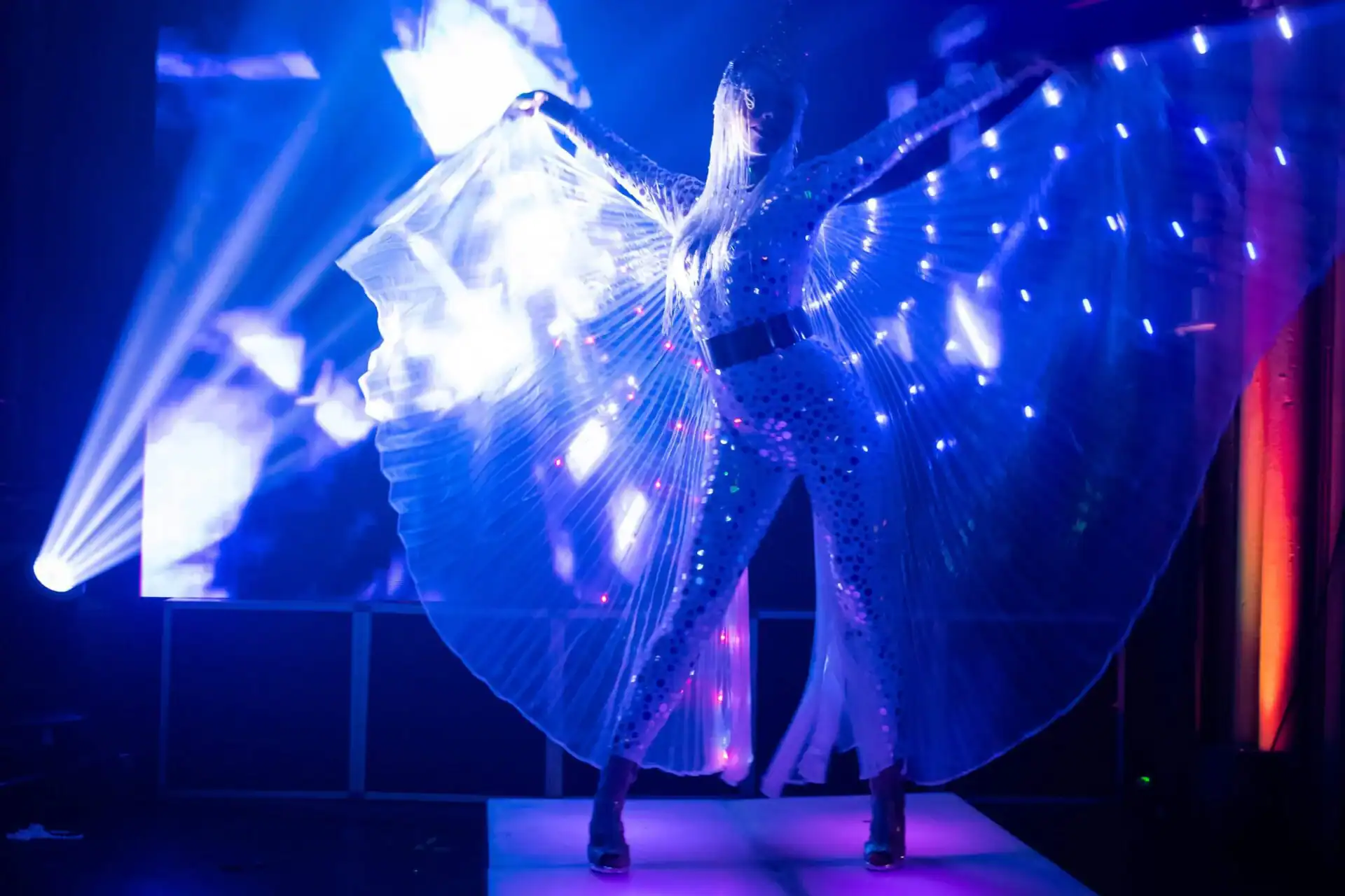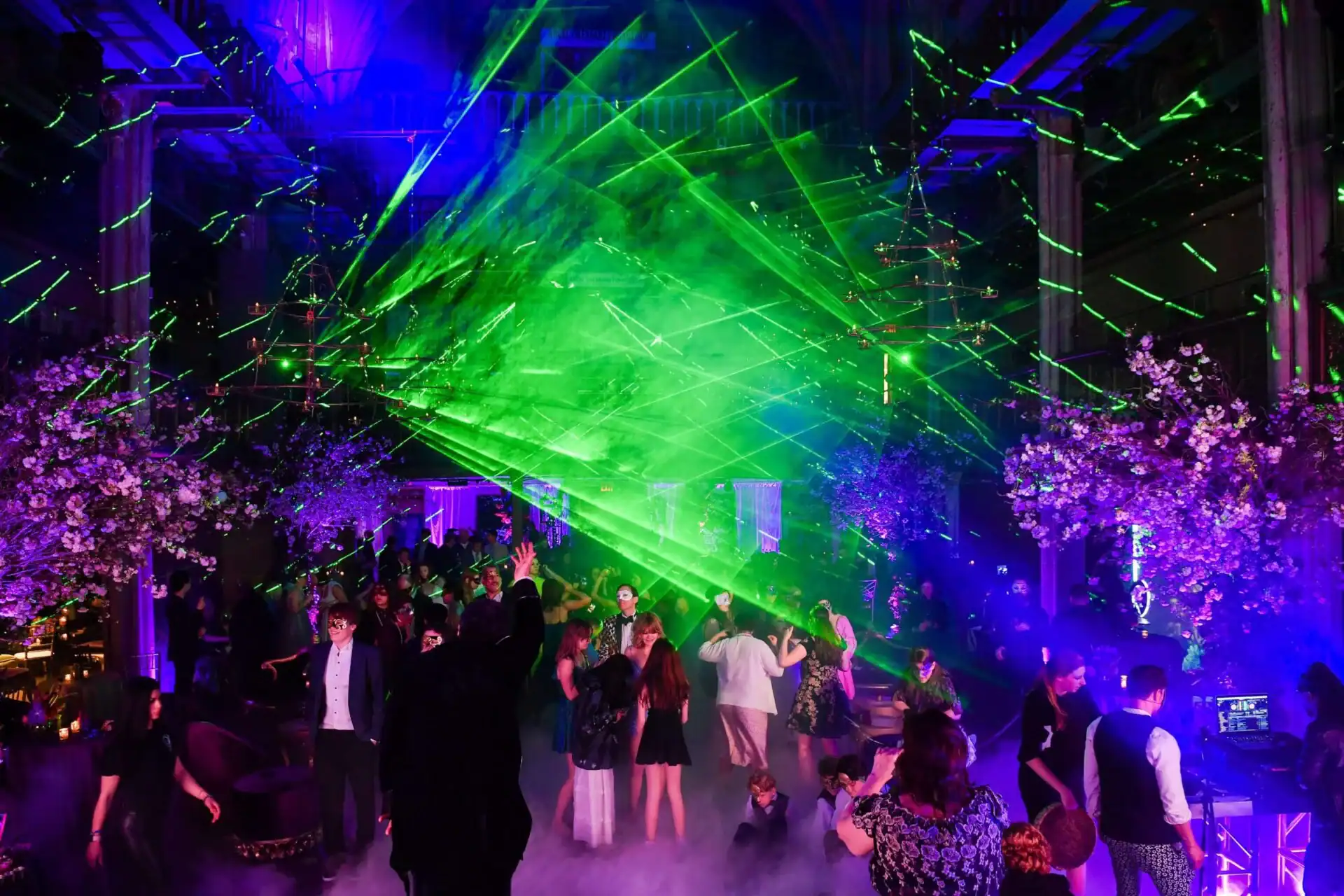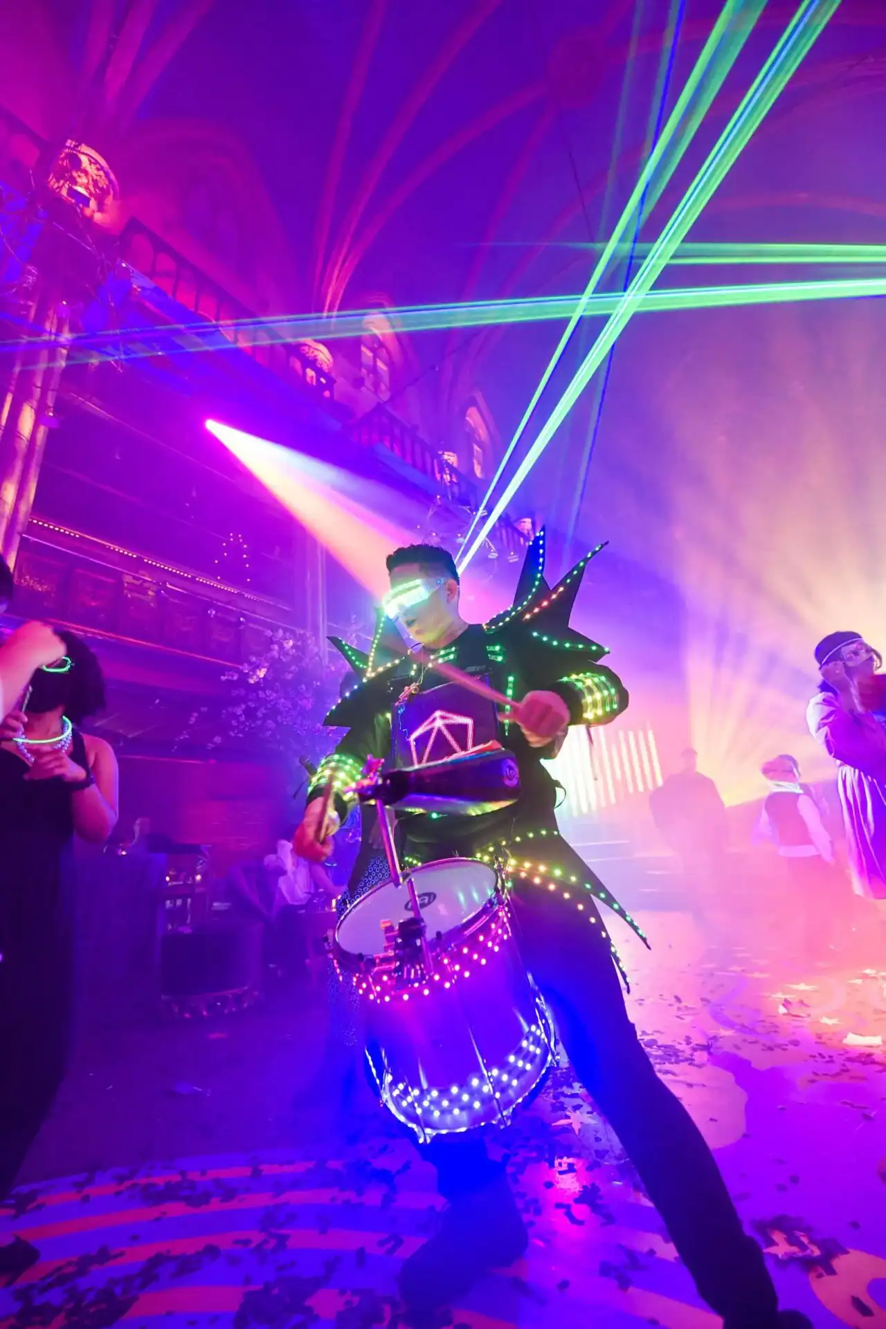 Debbie wanted layers of excitement, and she delivered! Each moment was a new, exhilarating experience. After dinner, performers distributed masks and surprises while dry ice created an ethereal fog. A laser light show engulfed the room, followed by cannons of confetti, culminating in a grand finale to a truly enchanting evening!