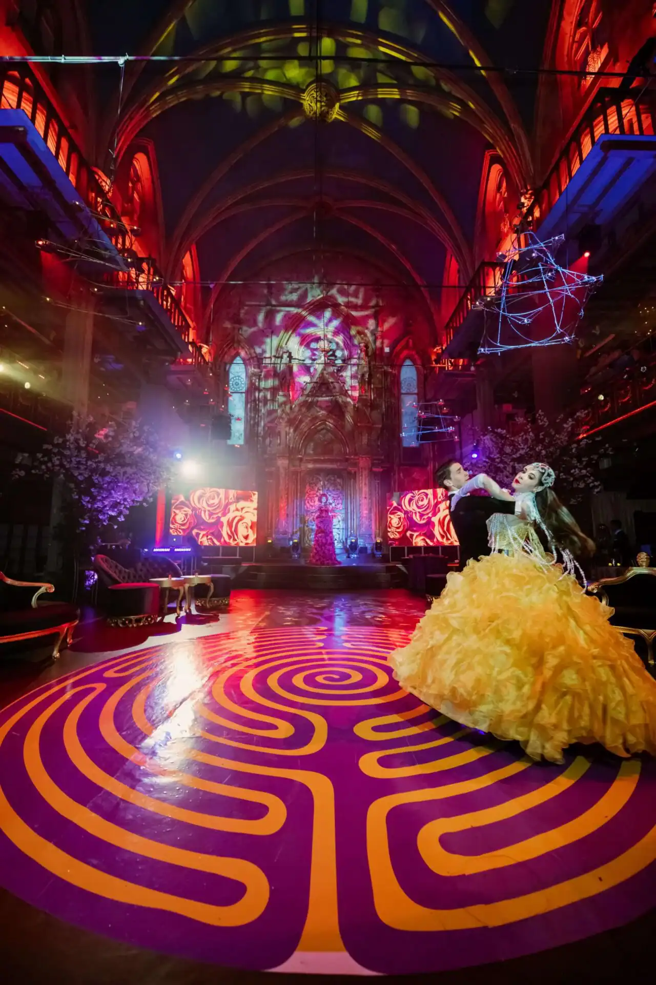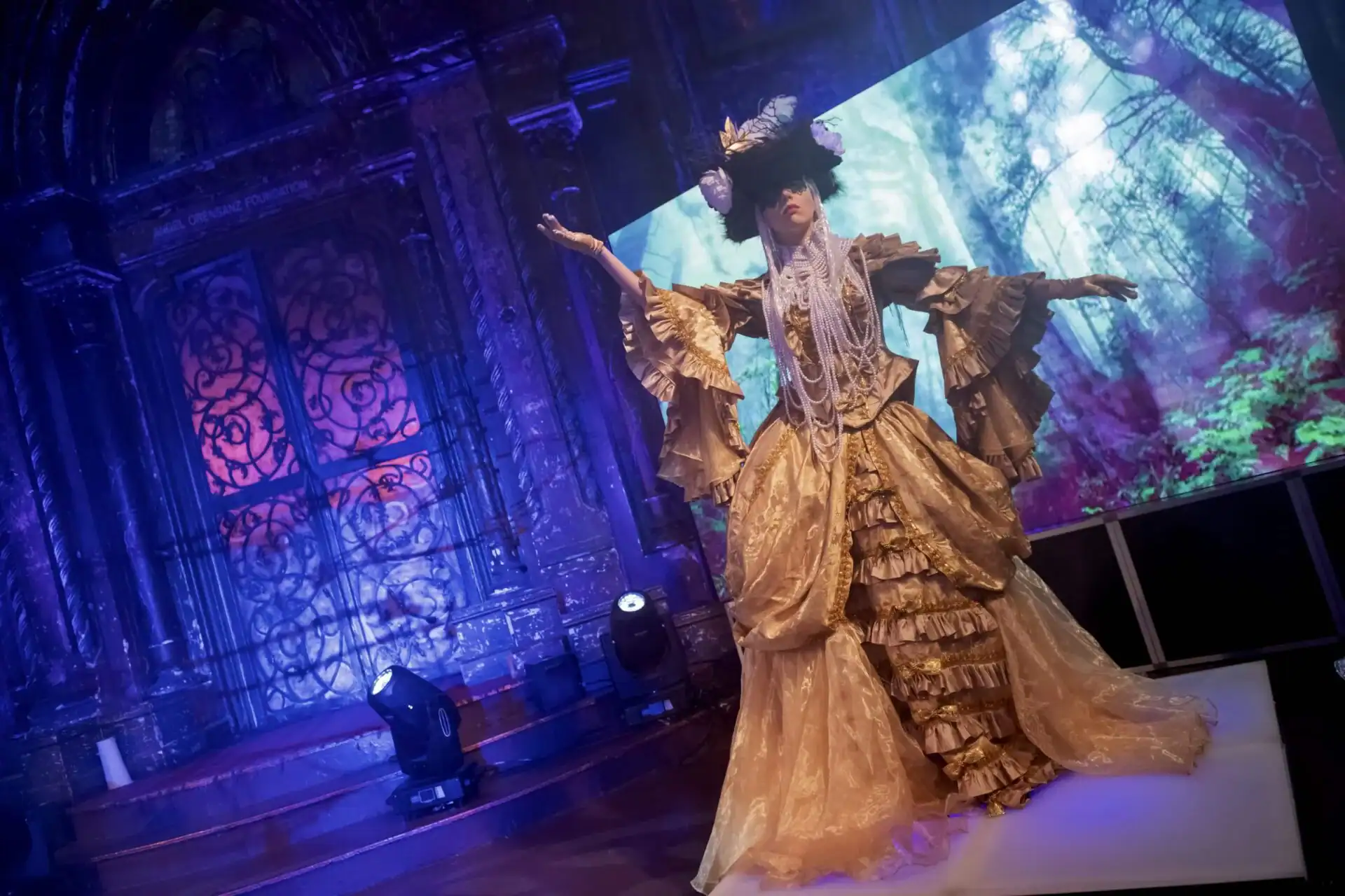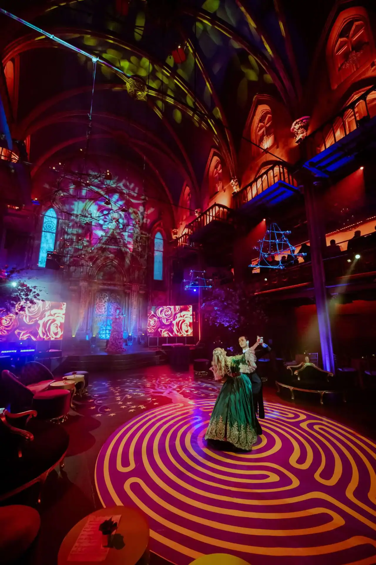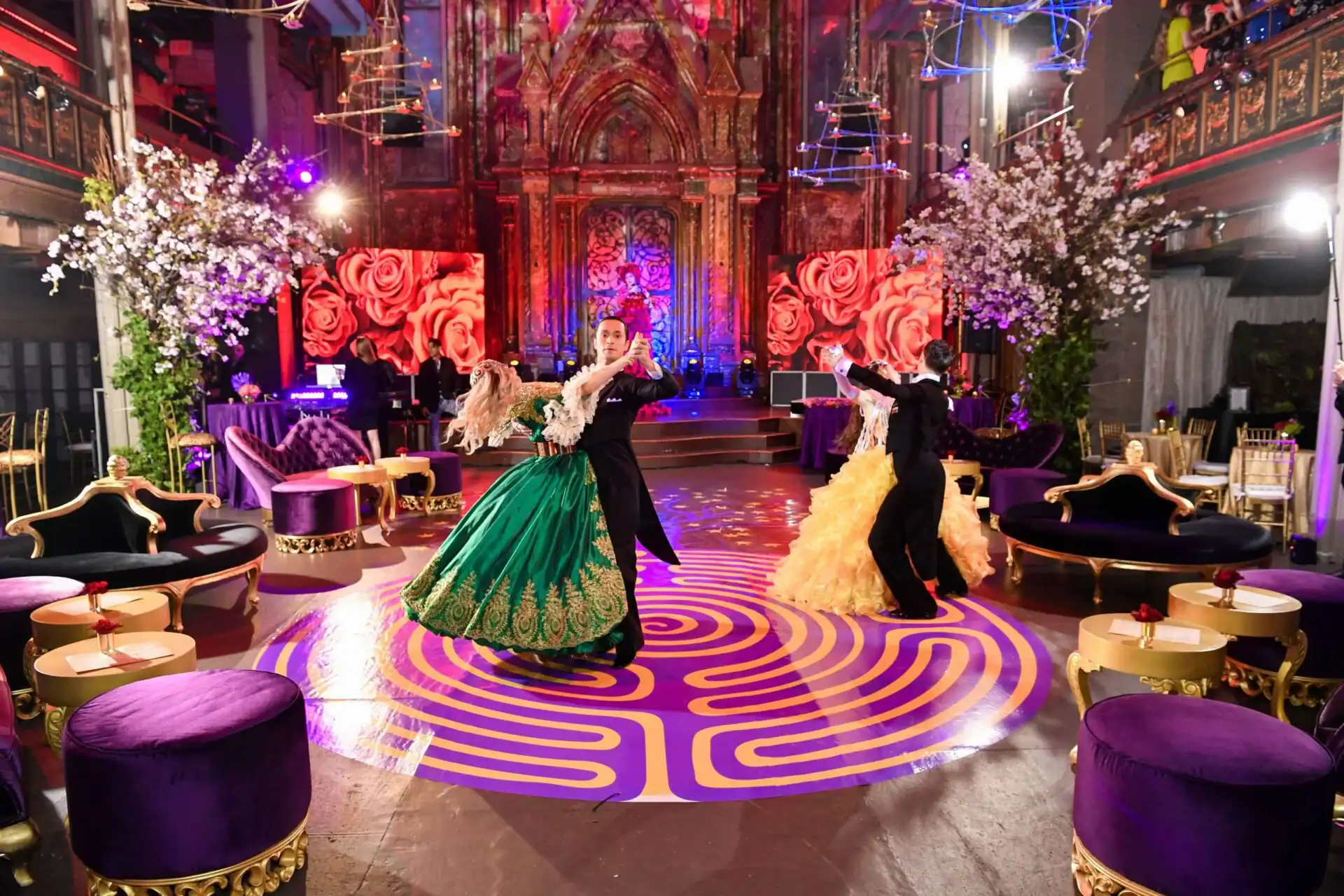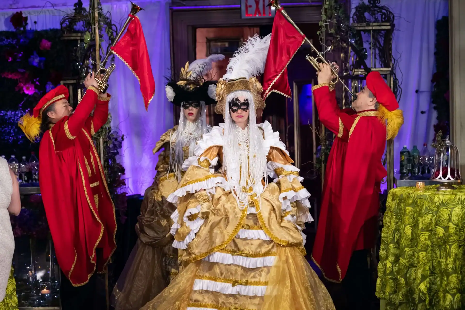 Step into a world of enchantment orchestrated by Debbie Hart and executive producer Richie Hart & team! Imagine the Angel Orensanz in Manhattan’s Lower East Side transformed into a mystical storybook setting. As guests arrived, they were greeted on the balcony by canapés and themed stations catered by Thomas Pretty Events to Savor. A towering violinist in a red floral costume serenaded the scene while ballroom dancers, adorned in period attire, waltzed to the melodies.