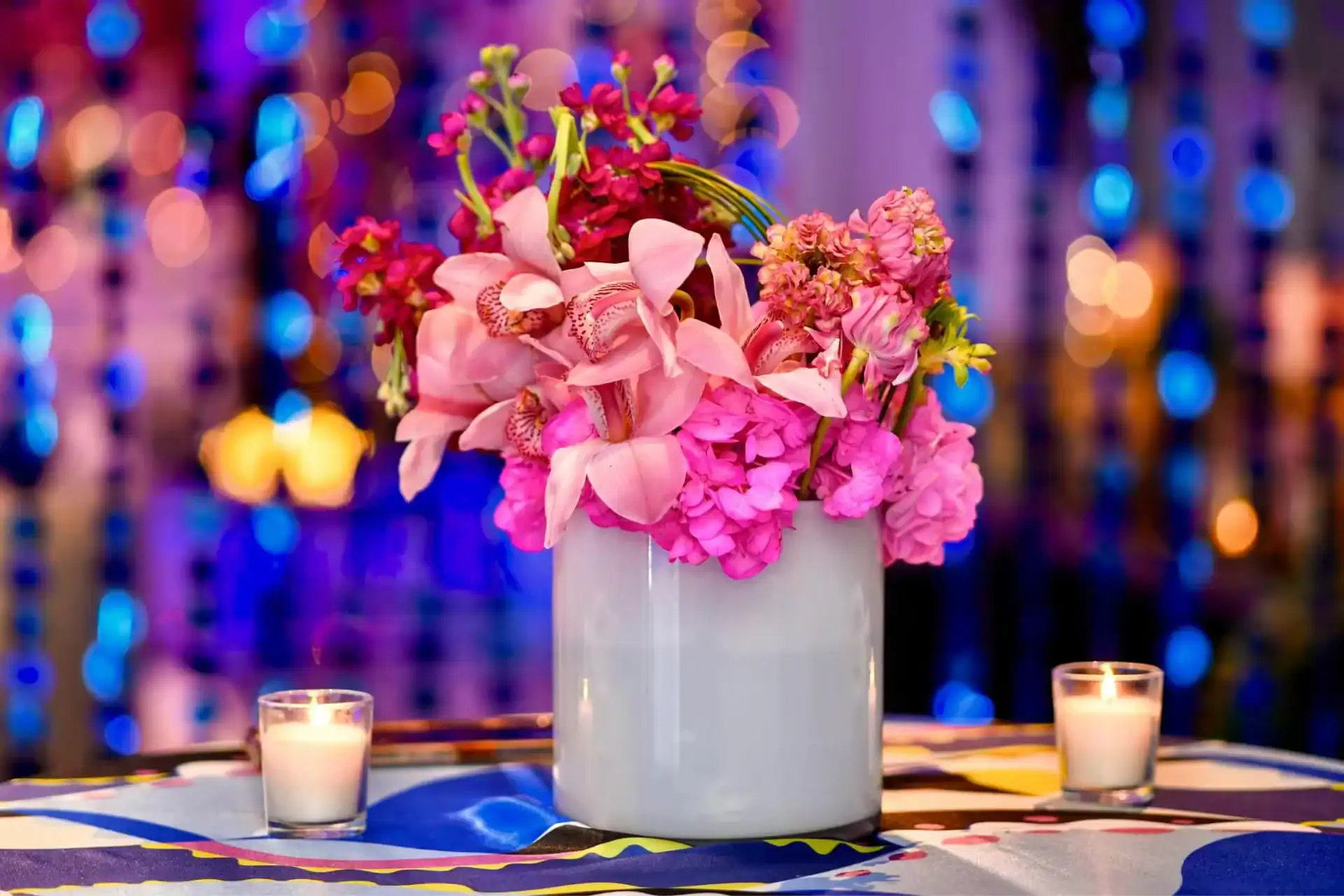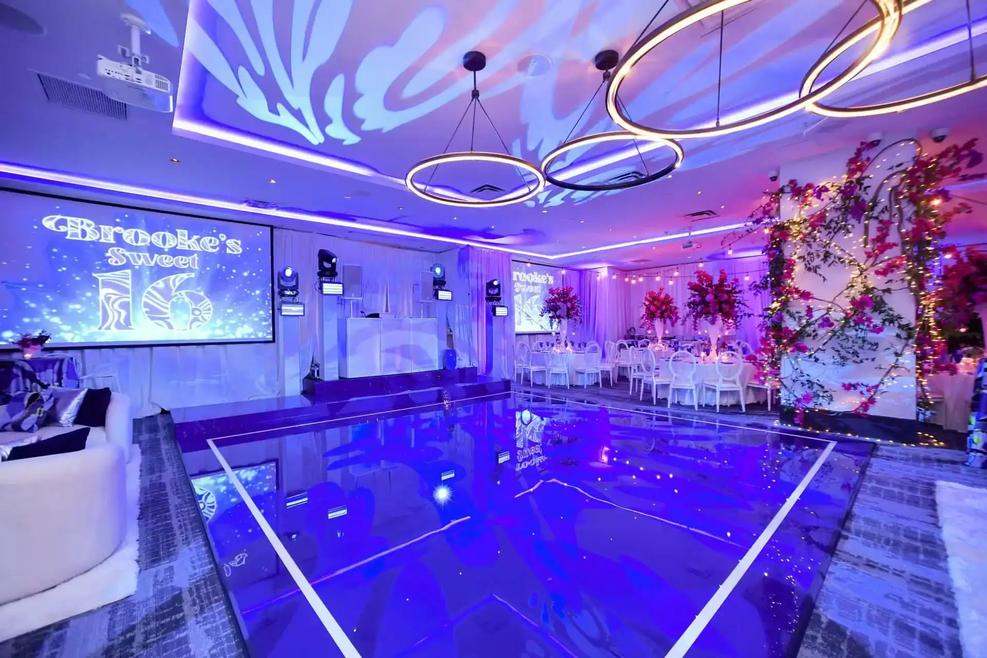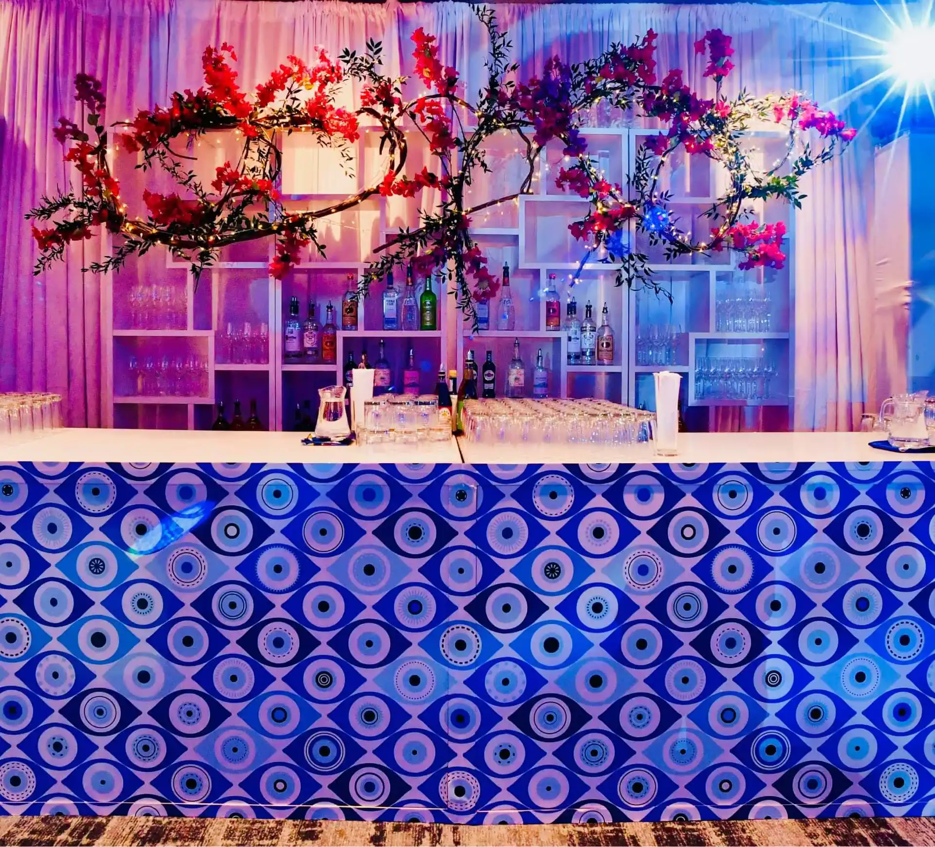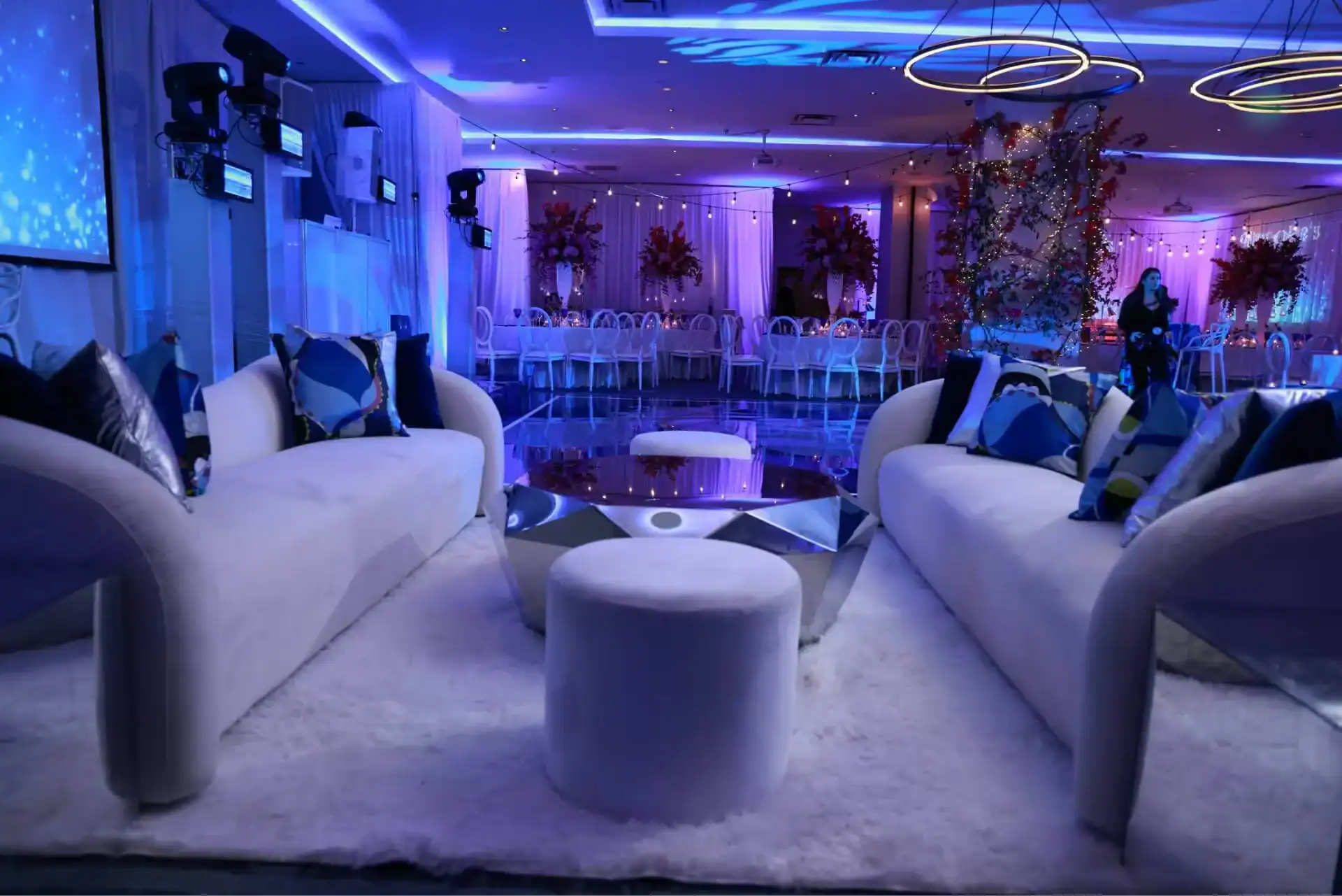 Debbie Hart and her team transported guests to a breathtaking Greek island with a “Mamma Mia” themed sweet 16 that was nothing short of magical. From the moment they arrived, guests felt whisked away to the “Hotel Bella Brook,” greeted by a lush boxwood archway adorned with vibrant pink bougainvillea florals and cascading vines along pristine white stucco walls. The iconic blue and white colors of Greece were showcased everywhere, creating a stunning and authentic atmosphere. Bistro lights twinkled over the adult seating area, while the teens enjoyed their exclusive VIP section, decked out with Pucci-inspired prints and luxurious white velvet couches. The blue mirrored dance floor sparkled under the twinkling lights, adding a mesmerizing glow to the room. But the real showstopper of the night was the immersive photobooth, where guests were captured taking tons of pictures in a beautifully crafted Greek setting, complete with a real swing. It was an unforgettable celebration for our “Dancing Queen”, filled with fun, laughter, and endless memories!