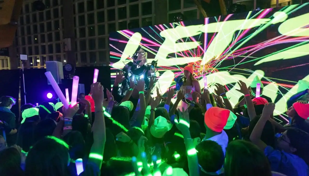 The night reached its pinnacle with a surprise appearance— a giant LED robot on stilts, joining the festivities. A party like this, where every detail radiates with vibrancy and energy, truly invites everyone to embrace the glow. So……Let’s GLOW!