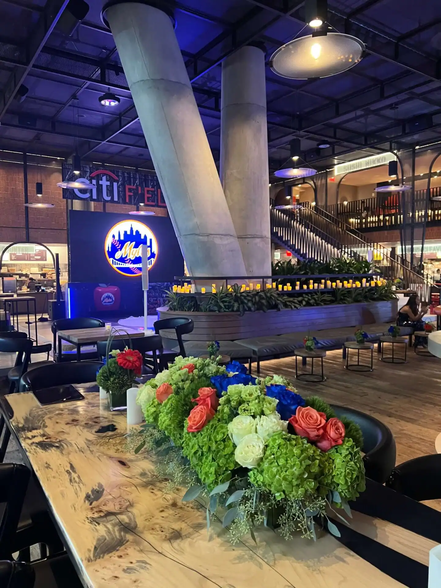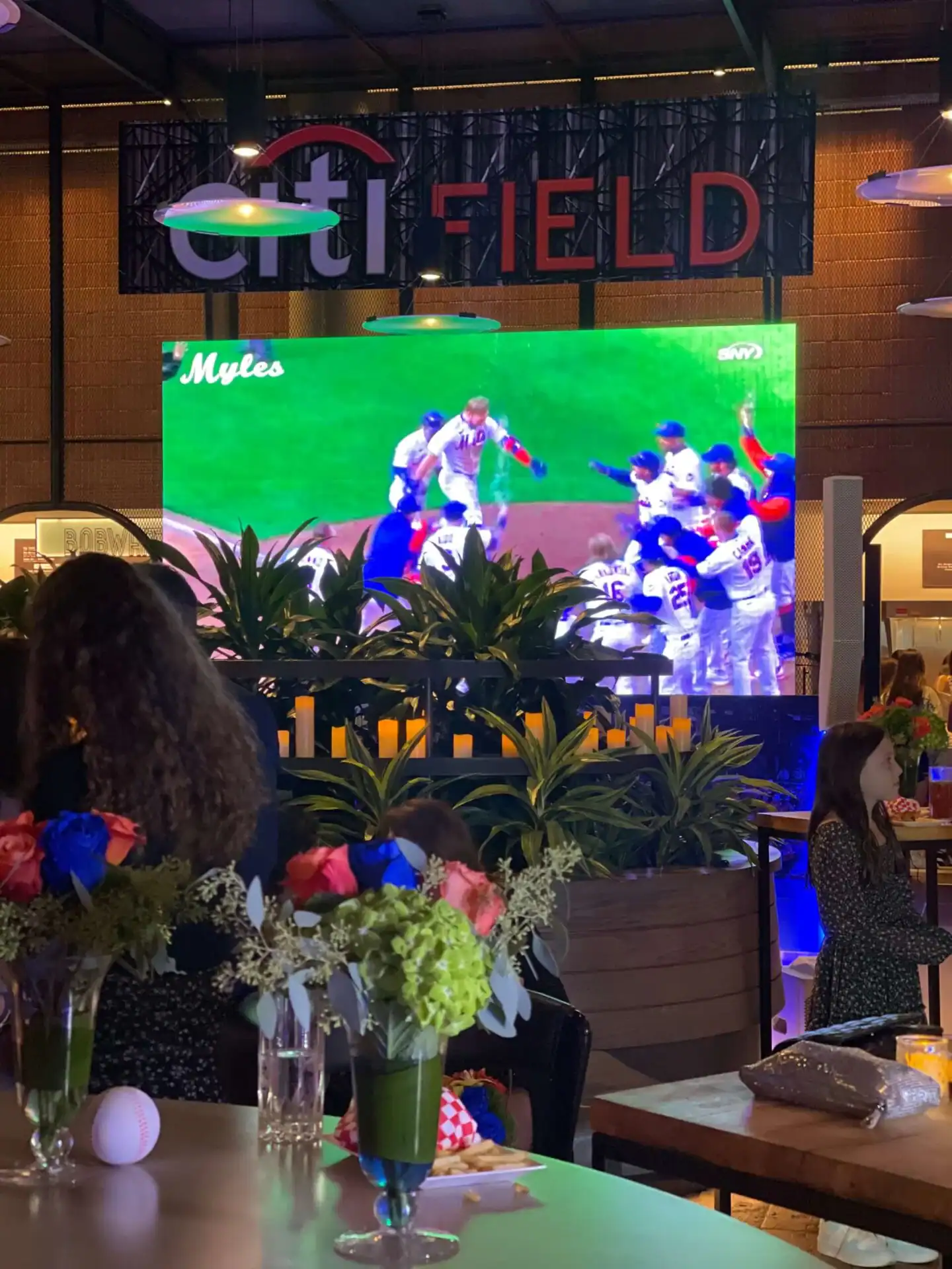 Guests indulged in a dining experience that took them on a stroll around our gourmet food court, offering a grand variety of stadium-favorite foods. The atmosphere was electric as we brought Citi Field to life on our giant video wall, immersing everyone in the outfield action with fantastic Mets footage and graphics—making them feel like they were right at the stadium.