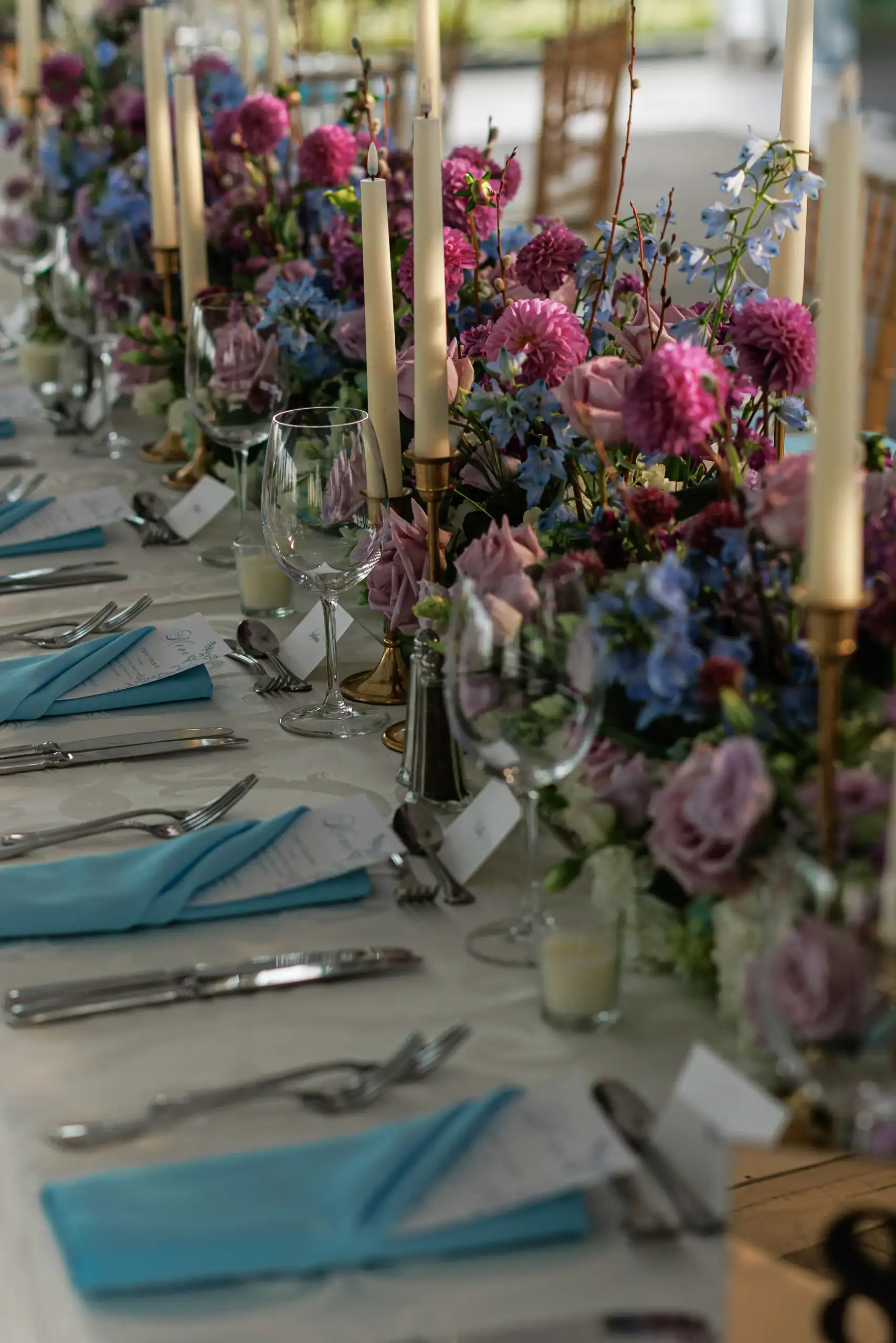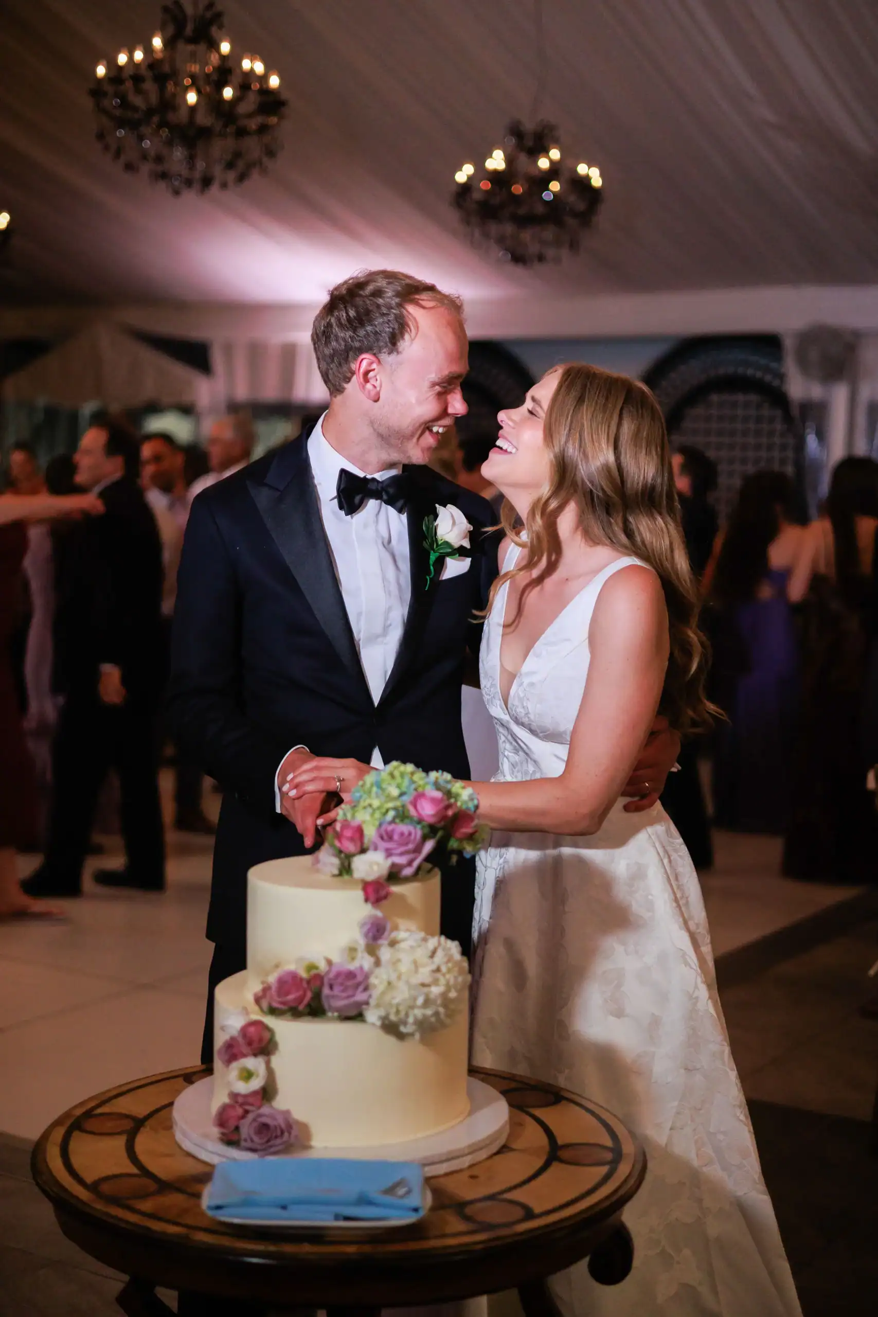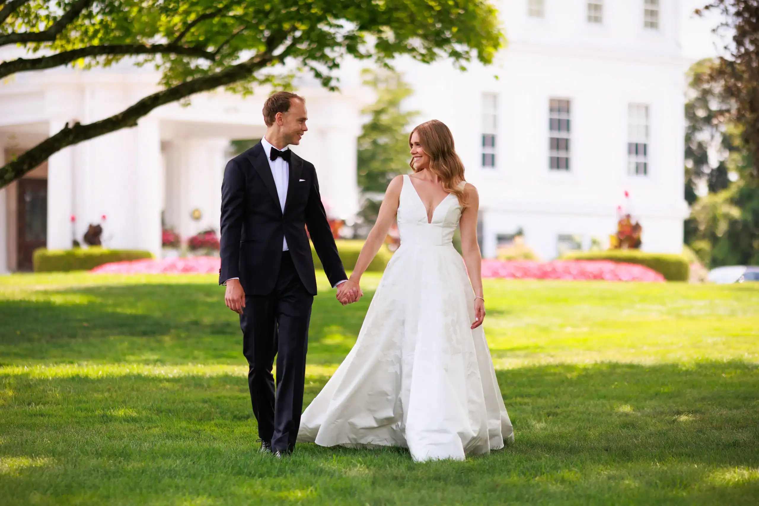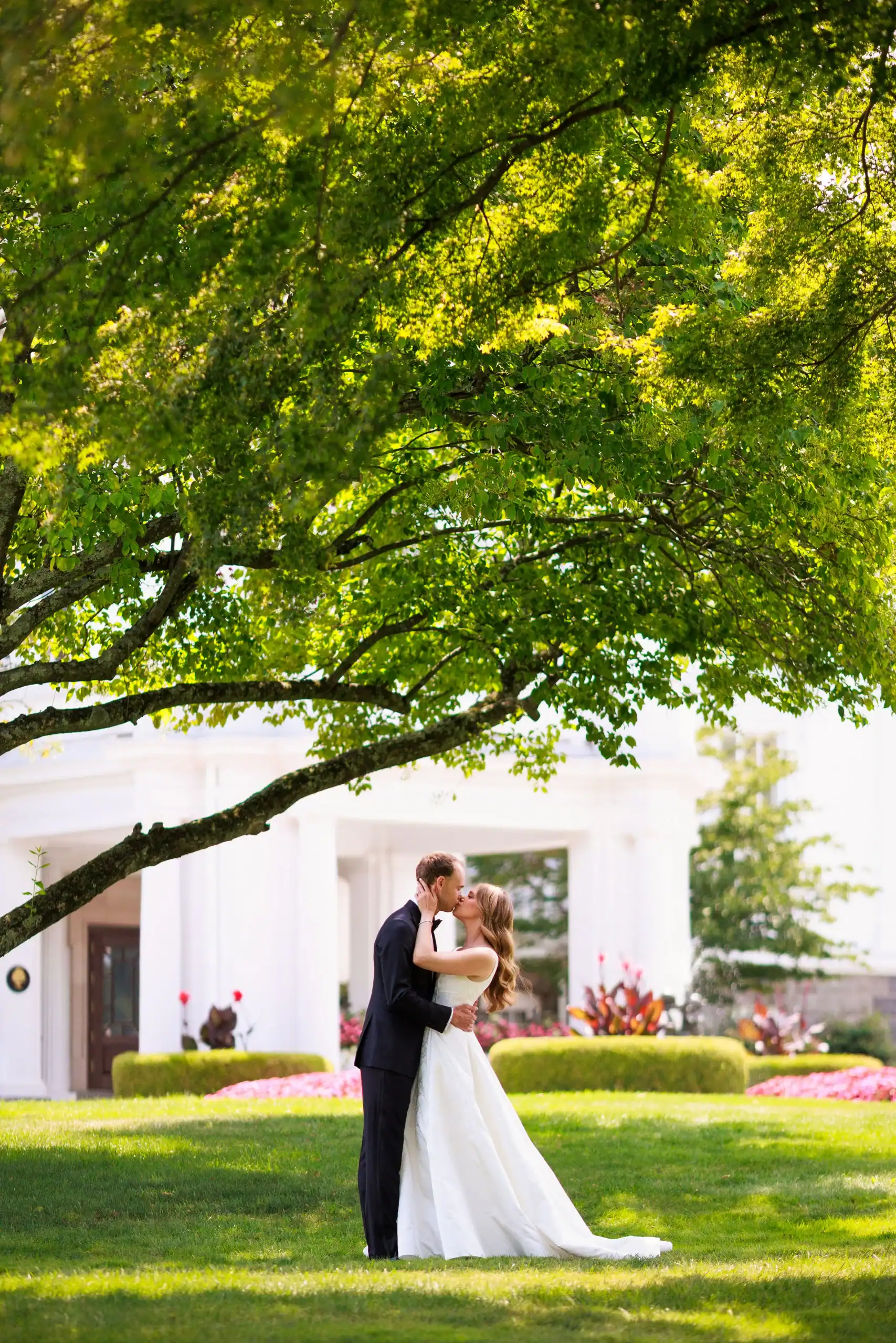 Summer weddings are the perfect time to experience the beauty of abundant florals, lush landscapes, manicured lawns, and unforgettable sunsets. Nothing fell short of that for this bride and groom, who envisioned an intimate celebration surrounded by natural elegance. They chose to have both their ceremony and reception at their country club, drawn to its stunning interior and exterior spaces, along with its first-class cuisine and impeccable service. As an added bonus, the club’s white tent—draped in flowing fabric, accented with iron chandeliers, and centered around a glossy white dance floor—allowed the celebration to seamlessly flow from indoors to outdoors. The design embraced soft pastels and organic elements, creating a serene, romantic atmosphere. As guests dined and danced, they watched the sun set into a warm summer night—an effortless ending to a perfectly elegant and memorable celebration.