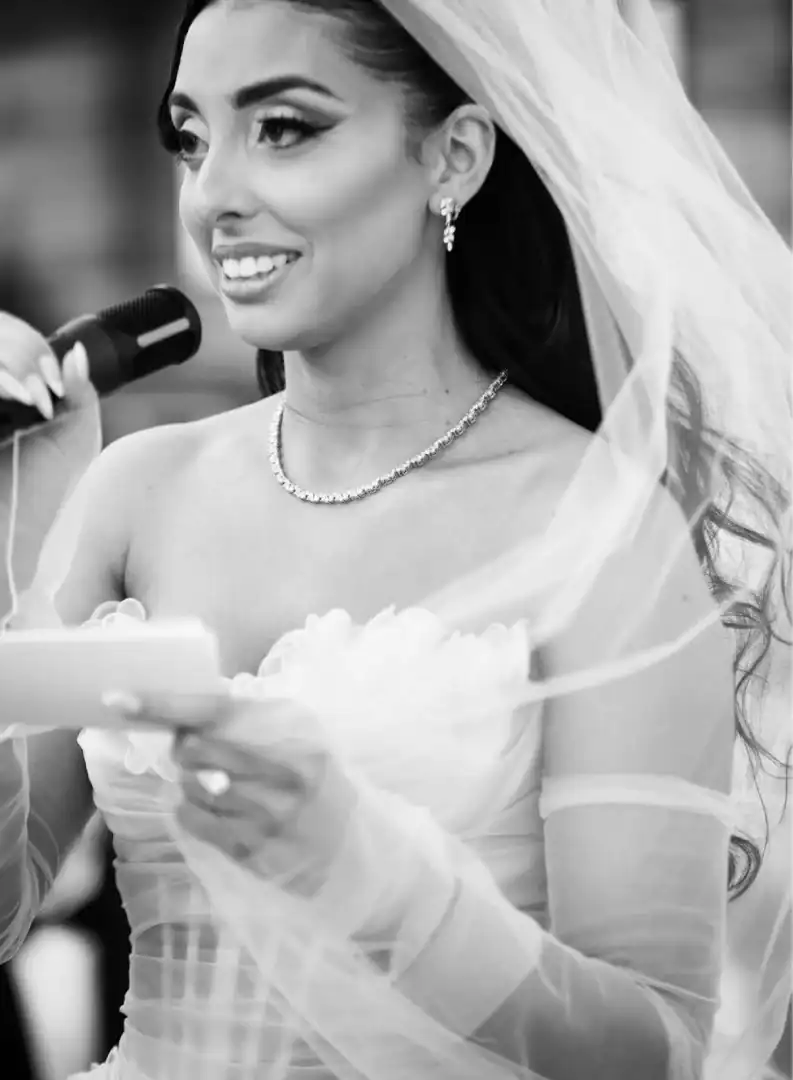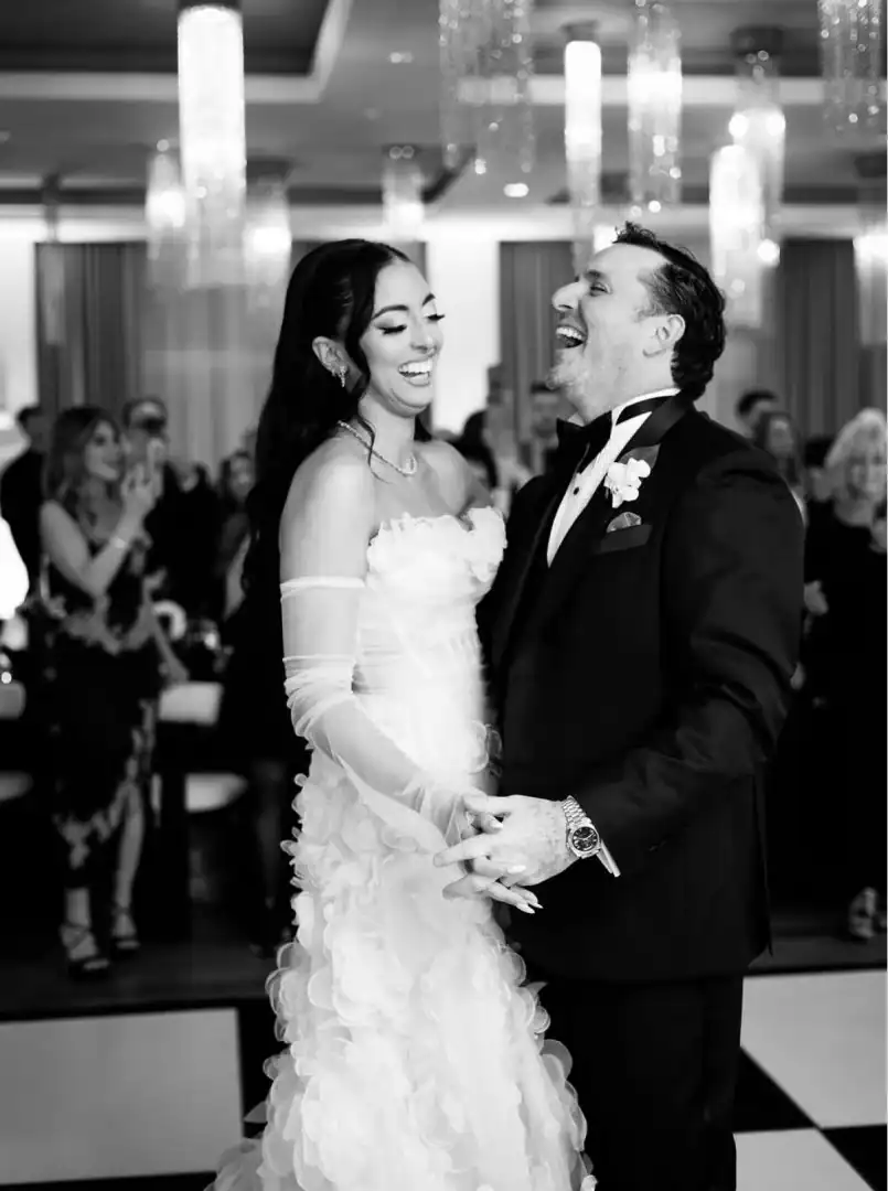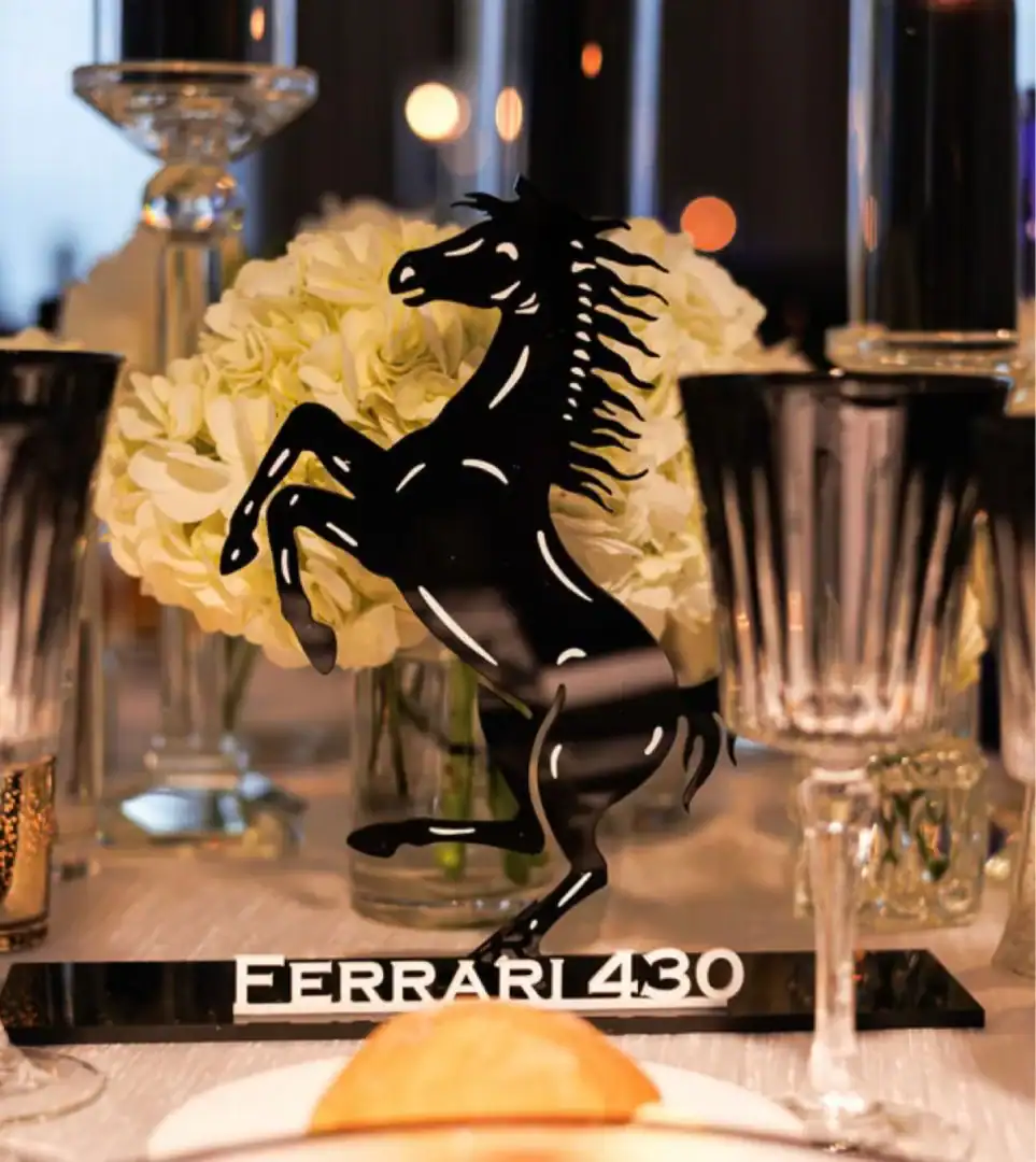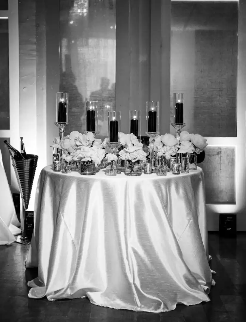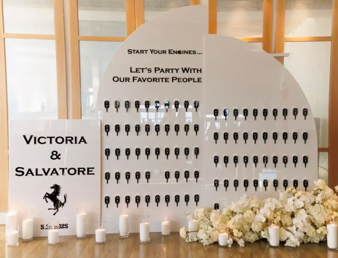 A black and white wedding is the definition of timeless elegance—yet it can still feel modern, fresh, and full of personality. For this celebration, every detail made a statement. Crisp white florals spilled over sleek black vessels, candlelight glowed against dramatic black acrylic kings tables. Round tables where clothed with silk white dupioni linens, and a striking black-and-white checkered dance floor set the stage for an unforgettable night. With the couple’s last name being Ferrari, they added a playful, personal touch by naming each table after a different Ferrari model. Instead of traditional place cards, guests approached a stunning seating chart and were handed a sleek Ferrari key that led them to their seat—a detail that had everyone talking. Classic. Chic & Unforgettable. This was black and white never looked SO good!