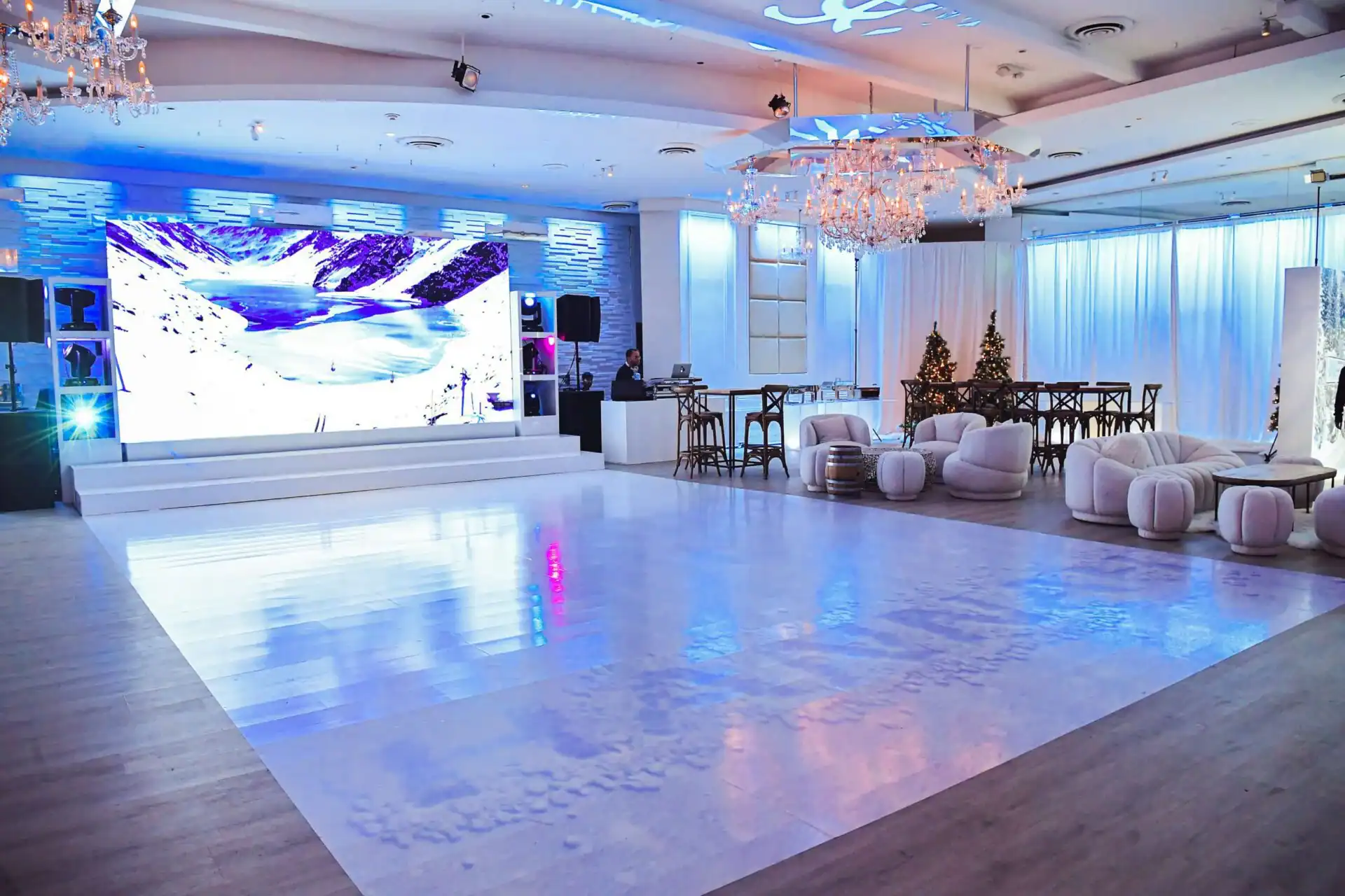 As guests glide into the ballroom, they are greeted by the enchanting ambiance of a winter wonderland, complete with snow-covered branches and the soft glow of candlelight. Every detail is meticulously chilled to perfection, creating an immersive and elegant atmosphere.